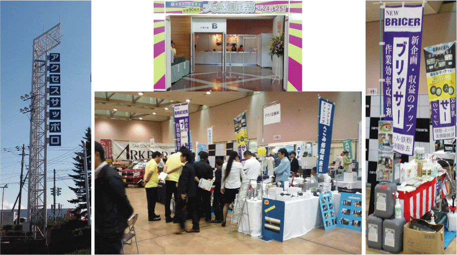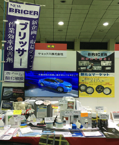 | 車両用ケミカルメーカーとして多岐にわたる商材が出品され北海道でも大盛況でした。 ブリッサー、メタルスター、スーパースキット、NEW−E−COAT、ロレーヌ2095、ピコ、カーリップ、無臭バンキン、グランツ、ハイクリアー |