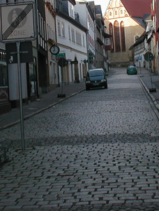 | 雪国で特に人気のあるブリッサーのため、フランクフルトとベルリンの中間に位置する山間の小都市ザルフェルトを訪問。 3月末で坂道の端には融雪剤が少し残っていた。 |