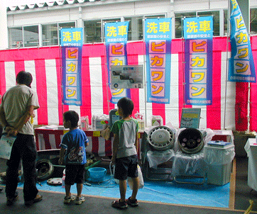 | 正面に設営していただいたブリッサー姉妹品ピカワン。 その画期的洗浄力を見てびっくり。 |