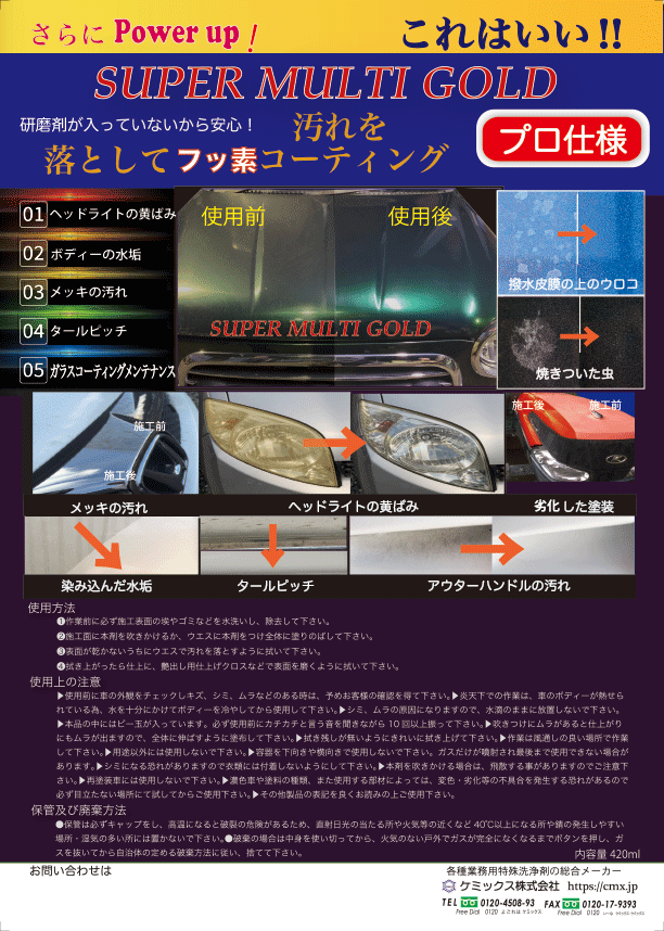 洗浄&長期耐久型フッ素撥水ポリマーコーティング&艶出しの一発仕上げ剤