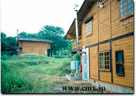 | 築10年余で校倉造のしっかりした建物。日本産の良質の杉材を使っていて傷みも少ないので、アククリーンできれいになると判断。奥の建物は洗浄直後でまだ濡れている状態。 | アククリーンの洗浄後、以前に手の届く所だけチョコレート色のペンキを塗ったことが分かりました。外回りの無垢木材をペンキなどで塗膜をつくり、木の呼吸を止めることは避けたいものです。ここではアクセントに一部で助かりました。 | 乾燥後外部用木材保護塗料ガードラックのメープル色で仕上げ。木材が傷む前だったので仕上がりも完璧です。どんなに良い木材を使っていても、腐れかけたものはこれほどにはなりません。 最近では有機溶剤系でない自然油や水性タイプの保護塗料が多くなりました。 |