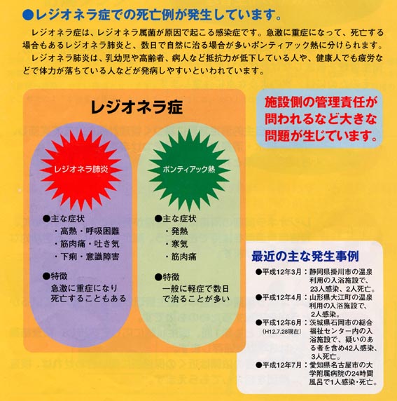 感染源は循環式浴槽水のエアロゾルが感染源です
