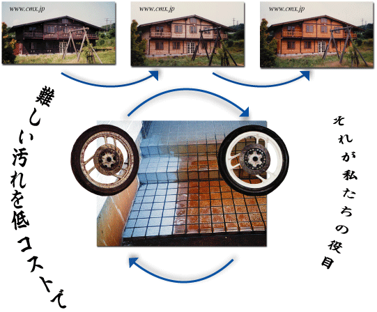 | 今日では広く行われるようになった別荘、ログハウスの外壁木部のアク洗い。木材処理剤の先駆者として旧来の施工方法である、クリーナーで汚れを落とし過酸化水素で戻すという二液型から、一液塗布後水洗浄という新たな施工方法を手がけ一般化しました。北海道ニセコから兵庫県三田市まで全国各地の別荘・ログハウス・校倉ペンションと数多くの施工を行い、その薬剤は効果のわりには臭いがきつく泡切れの悪い初期のものから、独自の数々の施工で研究と改良を重ね、現在木材処理剤剤の決定版となった、ケミックスのアククリーンが誕生しました。また当社で施工上使用していた木材保護塗料除去剤を木材用強力ブレイクとしてそのノウハウを一般化したことにより、建築メンテナンス業界の新たな市場開拓になっております。安全性を念頭に置いた商品開発は、ジクロロメタン(塩化メチレン)を含まない木部用塗料剥離剤(2015年発売)へと進み、ケミックスのこれらの製品は塗装、建築関係の方々に広く支持をいただいております。